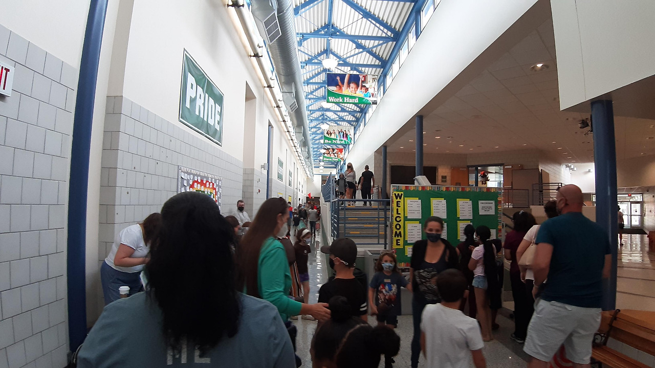 (사진) 오리엔테이션이 있던 날 학교 복도. 모든 학년 학부모가 다 모였다.