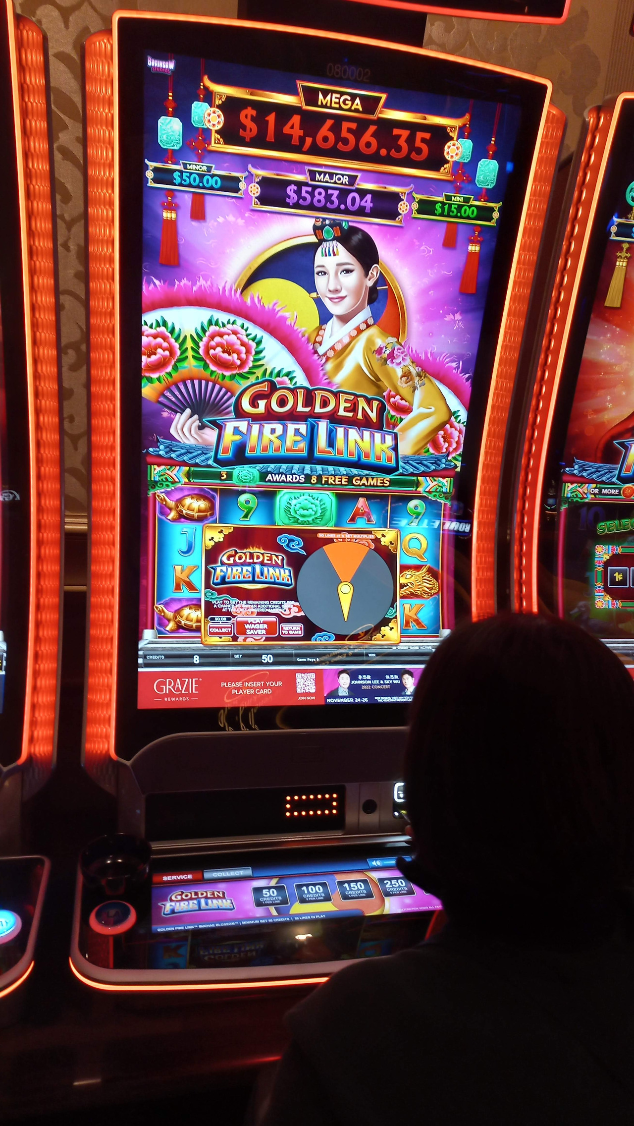 아내는 업보를 쌓고 싶어서 내려왔지만 그렇다고 도박을 해본 적도 없고 간도 작은 사람이어서 만만해 보이는 슬롯머신에서만 기웃거리고 있다.