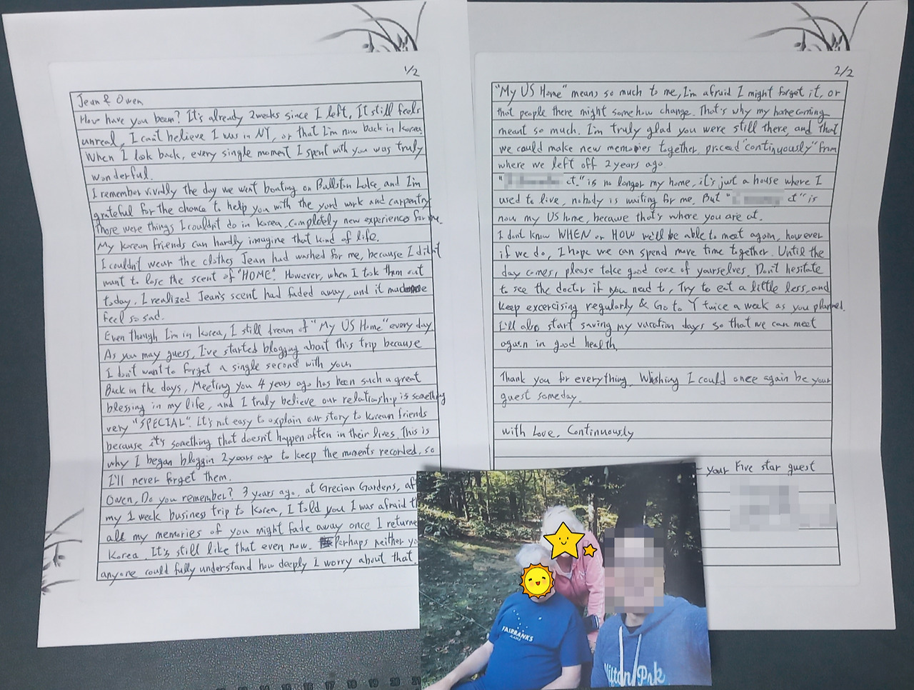 돌아보면 4년 전 당신을 만난 건 내 인생에서 정말 큰 행운이었고 지금껏 관계를 이어온 건 아주 특별하다고 생각해요. 솔직히 한국에 있는 사람들에게 우리의 이야기를 설명하려면 너무 길고 어려워서 엄두가 나지 않을 때가 많아요. 왜냐하면 우리에게 있었던 일들은 보통 사람의 인생에서는 흔하게 일어나는 일이 아니기 때문이에요.