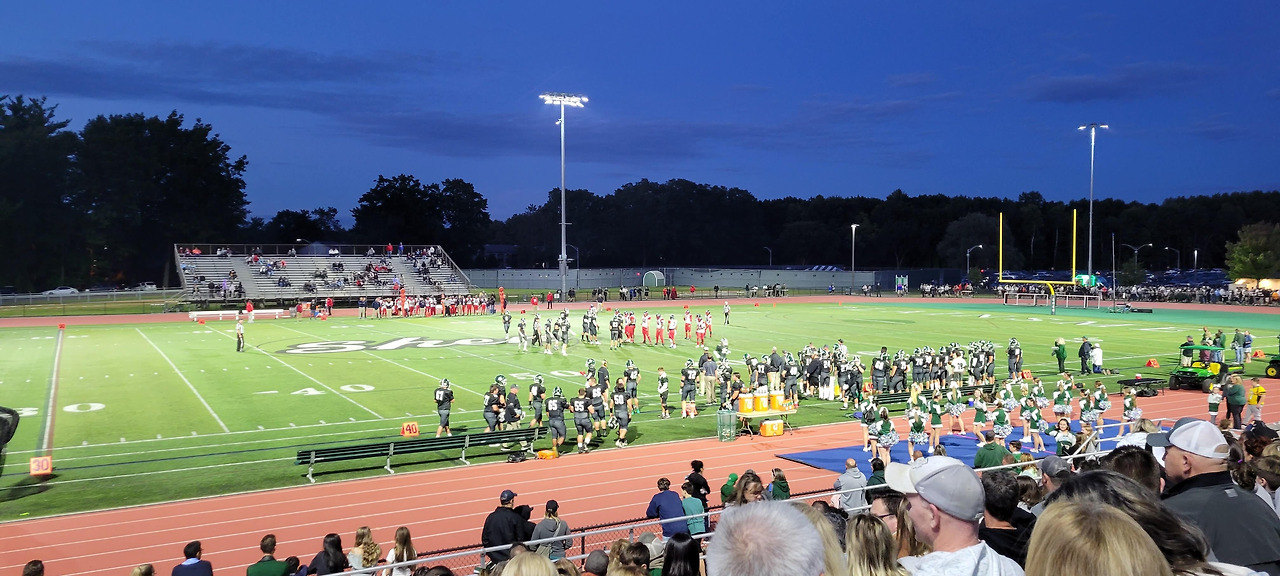 고등학교인데도 경기장이 굉장히 크고 넓으며 조명도 아주 밝은 게 관리가 잘 된 느낌이 든다. 물론 등받이 없는 관중석은 경기를 보기에 편안하지 않겠지만 그래도 이 정도면 고등학교 시설치고 매우 훌륭하다. 흙밭 운동장에서 축구, 농구했던 한국 40대 아저씨는 이런 환경의 미국 아이들이 그저 부러울 따름이다.