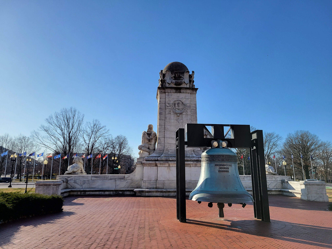 역 바깥에 있는 광장인 '콜럼버스 서클'엔 작은 분수대에 크리스토퍼 콜럼버스의 석상이 설치되어 있다. 원주민 및 이민자를 포용을 지향하는 요즘으로썬 조금 논란이 있을 수도 있는 그림이다. 역 건설 당시에 지어진 것이라 하니 그때는 그럴 수도 있었겠다 싶다. 그리고 콜럼버스 석상 뒤편에는 '자유의 종'이 있는데 미국 독립 200주년을 기념하여 1976년에 설치된 복제품(원본: 필라델피아 독립기념관)이다. 콜럼버스 석상과 이 종에 딱히 어떤 의미가 있다기보다는 소위 말하는 '미국적인 것'들이 백화점식으로 한데 모여있는 느낌이다. 미국의 수도니까 이 정도의 '애국심'은 이해해 주자.