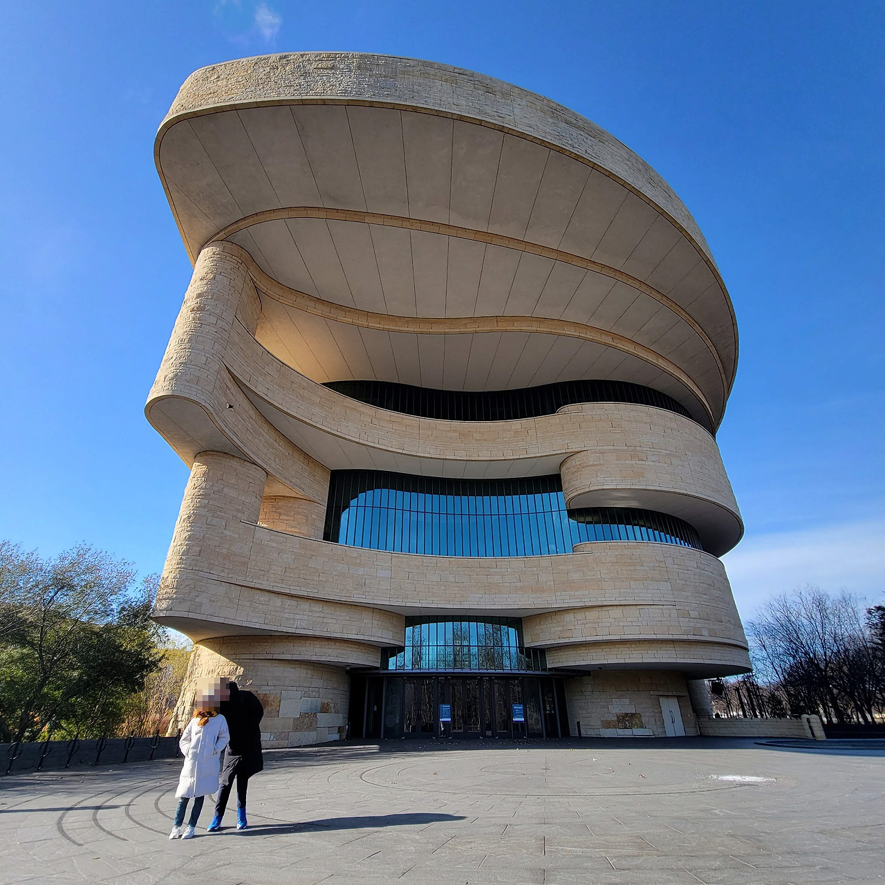 그야말로 '기록적인 추위'인 오늘은 건물 밖을 돌아다니는 것 자체가 위험하다는 생각이 들 정도다. 일단 아무 데나 들어가야 할 것 같았다. 일단 가까운 아무 데나인 '아메리칸 인디언 국립 박물관(National Museum of the American Indian)'에 들어왔다. 여기는 미국의 국립 박물관인 스미스소니언(Smithsonian) 계열 중 하나여서 입장료가 무료다. 독특한 외관을 한 박물관 실내에 들어오자마자 세은이가 로비 벤치에 널브러진다. 정말 너무 추운 곳에서 비로소 따뜻한 곳에 온 세은이가 '인디언'의 역사를 관람할 만큼 좋은 상태가 아닌듯해해서 이곳에선 그냥 쉬었다가 점심이나 먹고 가기로 했다. 박물관까지 와서 아무것도 안 하기엔 시간이 아깝긴 하지만 아이를 데리고 다니면 내 맘처럼 되는 게 많지 않은 법이다. 이따 오후를 도모하자.