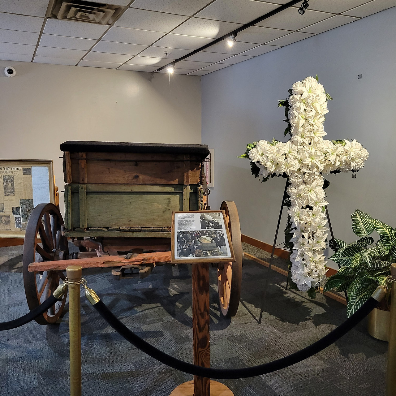 Freedom Hall에 기록된 MLK의 장례식 장면들도 눈길을 끈다. 테네시 멤피스에서 암살당한 MLK의 시신은, 500km가 넘는 거리를 이동해 애틀랜타로 돌아왔고 그가 마지막까지 목사로 있었던 아버지의 교회(Ebenezer Baptist Church)에서 장례식이 치러졌다. 가난한 이들을 위해 살았던 그의 관은 가난한 남부 흑인들의 오랜 방식 그대로, 노새가 끄는 낡은 수레에 실렸다. 전시된 사진 속 그의 장례 행렬에는 국가 차원의 의전이나 장식은 보이지 않고 대신 그 뒤를 십만 명이 넘는 보통 사람들이 따랐다고 한다. 장례에 실제로 사용된 수레 또한 전시되어 있는데, 지나치게 낡고 허름한 모습에서 오히려 범접하기 어려운 권위가 느껴졌다.