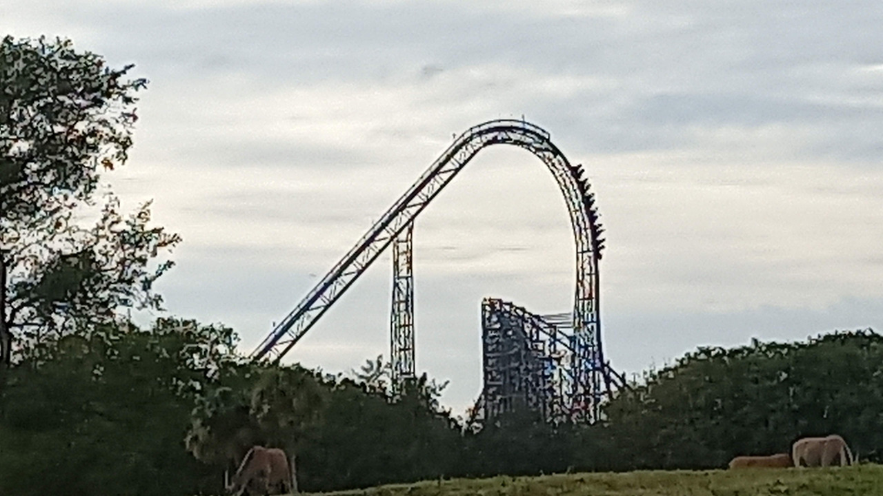 미국의 테마파크들은 재미의 수준을 극단적으로 만들어 놓은 것들이 종종 있다. 한국처럼 모두를 배려해 애매하게 타협하는 방식은 없다고나 할까? 감당할 수 있다면 타고, 그 이후는 전적으로 본인의 몫이라는 전형적인 미국식 태도. 그런 면에서 부쉬가든이 자랑하는 수십 미터 상공에서 수직으로 떨어지는 롤러코스터인 ‘아이언 관지’는 미국스타일의 '전형적 극단'을 보여주고 있었다. 아내는 애초에 탑승을 포기했고, 나와 세은이는 망설임 없이 줄에 섰다. 그리고 기대한 만큼, 아니 그 이상으로 짜릿한 시간을 보내고 내려왔다.