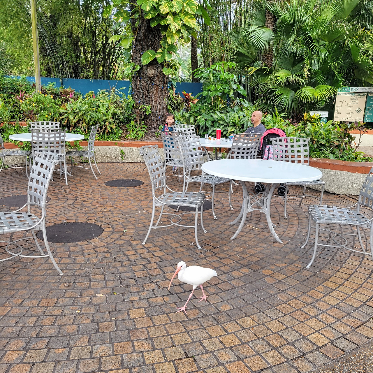 탬파 부쉬가든은 보통의 캐릭터 중심 테마파크와는 조금 차이가 있고 동물원과 놀이기구가 공존하는 공간이 많은 편이다. 놀이 기구들 타러 이동하면서 동물구역을 자연스럽게 지나게 되어 있어서 사람들의 발걸음을 자연스럽게 붙잡아 둔다. 산책 중에 우연히 마주치는 느낌으로 작은 새나 초식 동물들을 볼 수 있는데, 동물들이 울타리 안에만 있지 않고 휴식 공간까지 나와 있기도 해서 세은이가 무척 좋아했다.