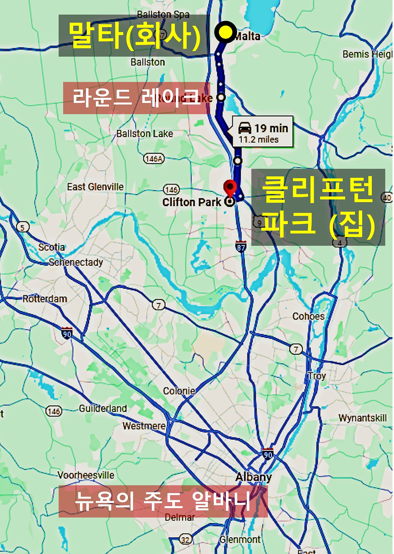 말타에 있는 사라토가 레이크(Saratoga Lake)를 매일 아침마다 다녀올 것. 왕복 40분. 이 길이 남편을 출근시키고 혼자서 돌아와야 하는 길임. 혼자 다녀올 때 아무 문제가 없어야 함.