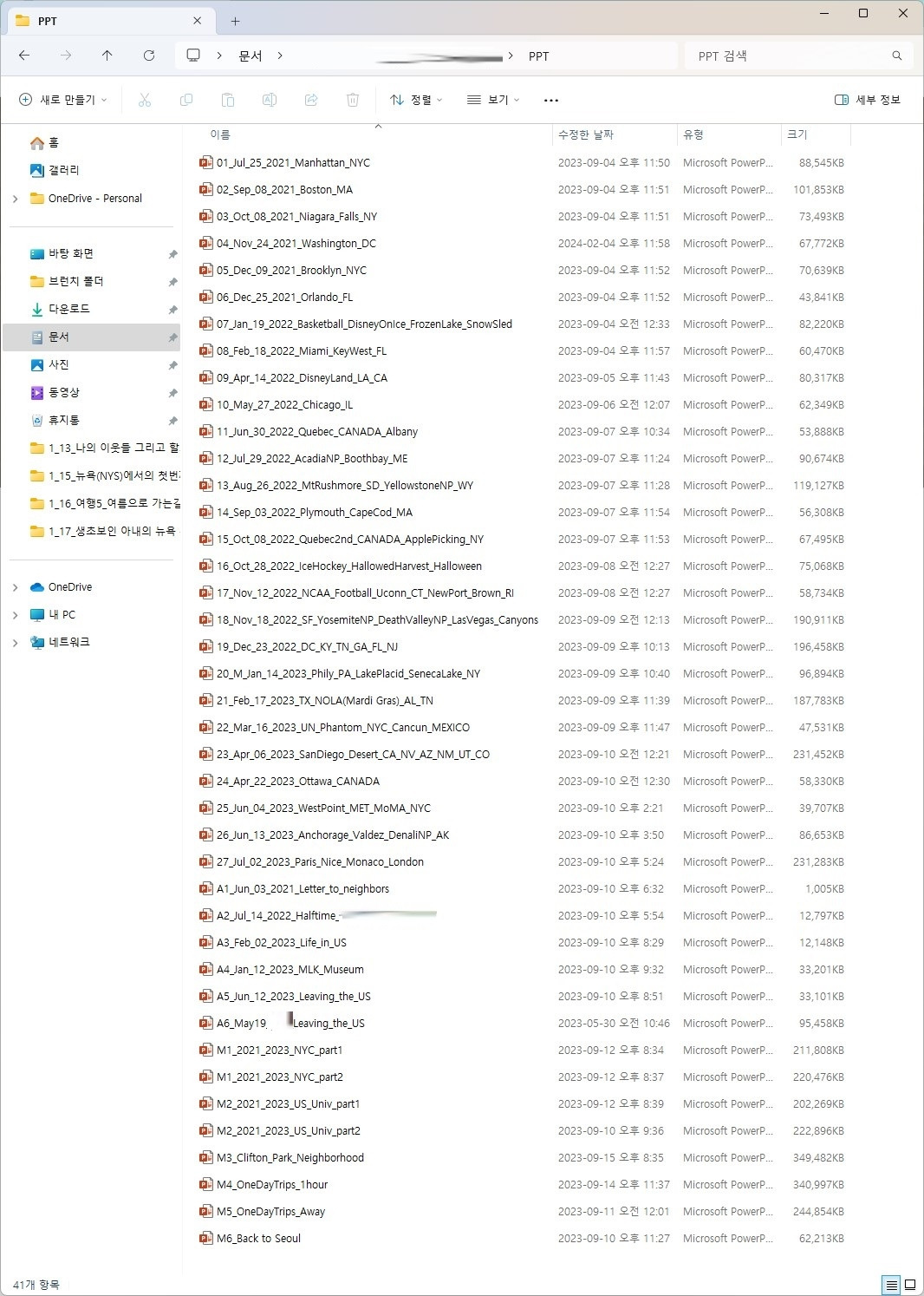원래는, 제가 한국 돌아오고 나서 여행 PPT들을 프린트 제본해서 예쁜 표지로 기념품처럼 만들고 싶었어요. 그래서 그걸 미국 친구들, 클리프턴 파크 이웃들에게 한 권씩 보내주려고 했었거든요. 우리를 잊지 말라는 의미로요.