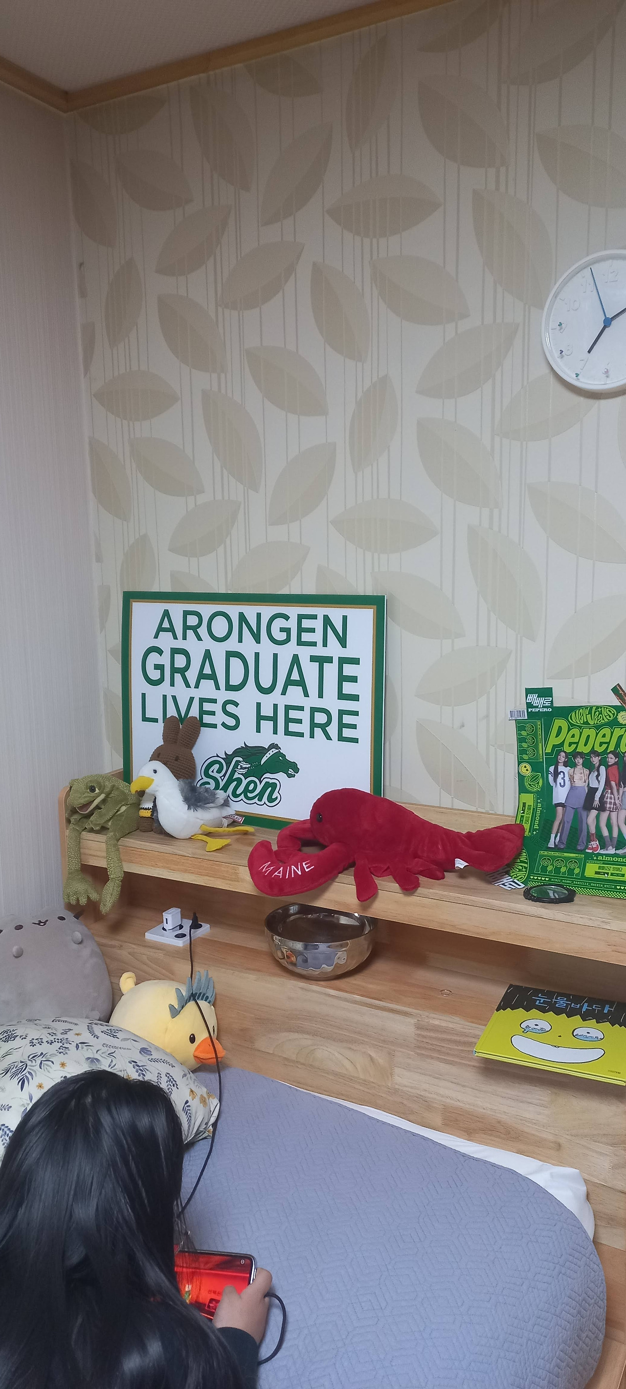 (왼쪽) 세은이의 한국 방. 여행 갈 때마다 샀던 인형들이 잔뜩 있다. 개구리 인형은 켄터키에서 왔다. (오른쪽) 영어과외 선생님 DyAnn. 세은이 그림.