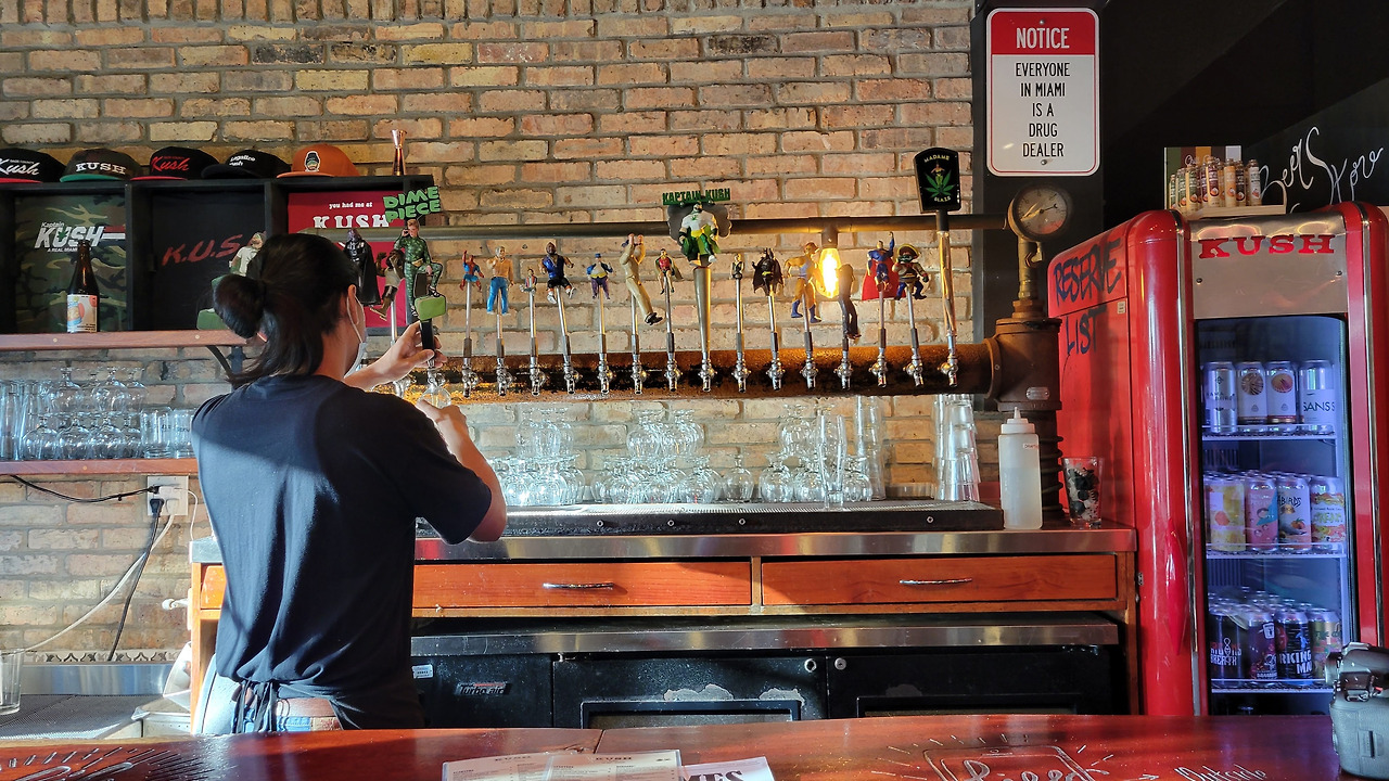 이렇게 술집에 와서 맥주를 먹는 것은 미국 온 이래로 처음이었는데 술맛도 좋고 분위기도 재미있다. 맥주 바 뒤에 재밌는 글귀들이 많았는데 '좋은 맥주는 싸지 않고 싼 맥주는 좋지 않습니다.'가 눈에 들어온다.