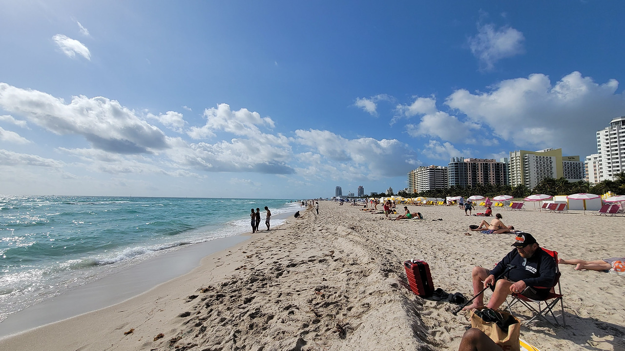 남북으로 길쭉하게 생긴 마이애미 비치 섬의 동쪽 전체 해변 구간은 전체 길이는 9마일(=15km)에 달하는데 그 폭도 100m 정도 되는 정말 광활한 해변이다. 해운대 해변을 10개 정도 합친 크기이다.