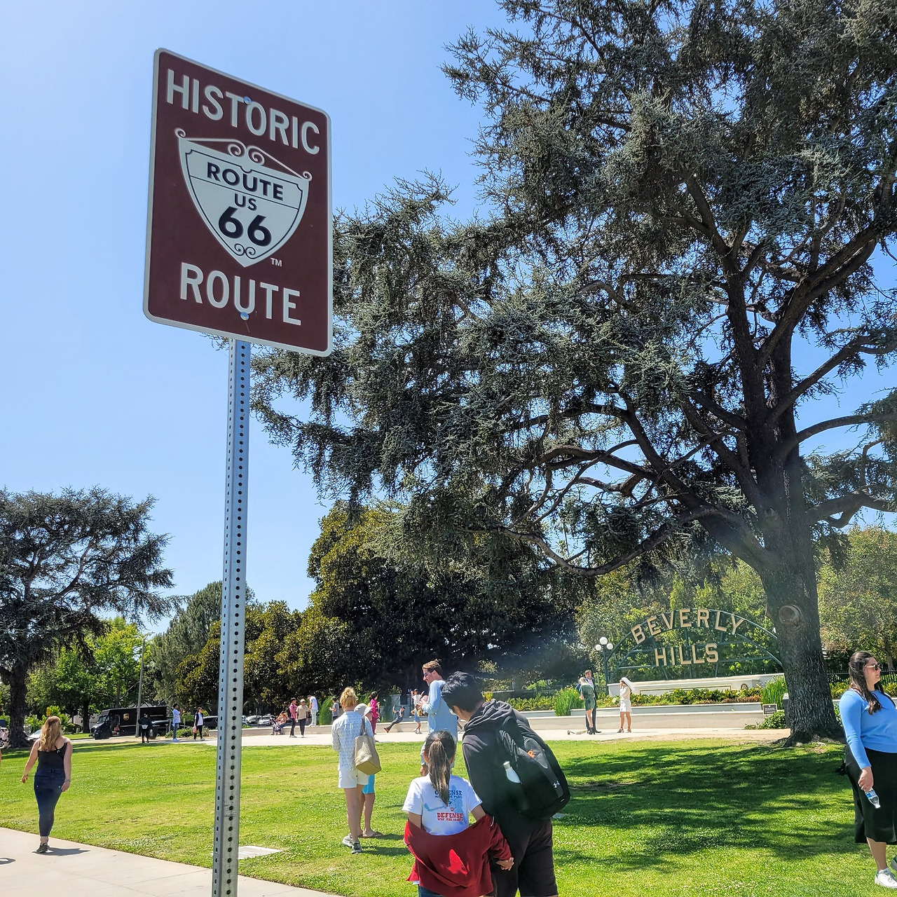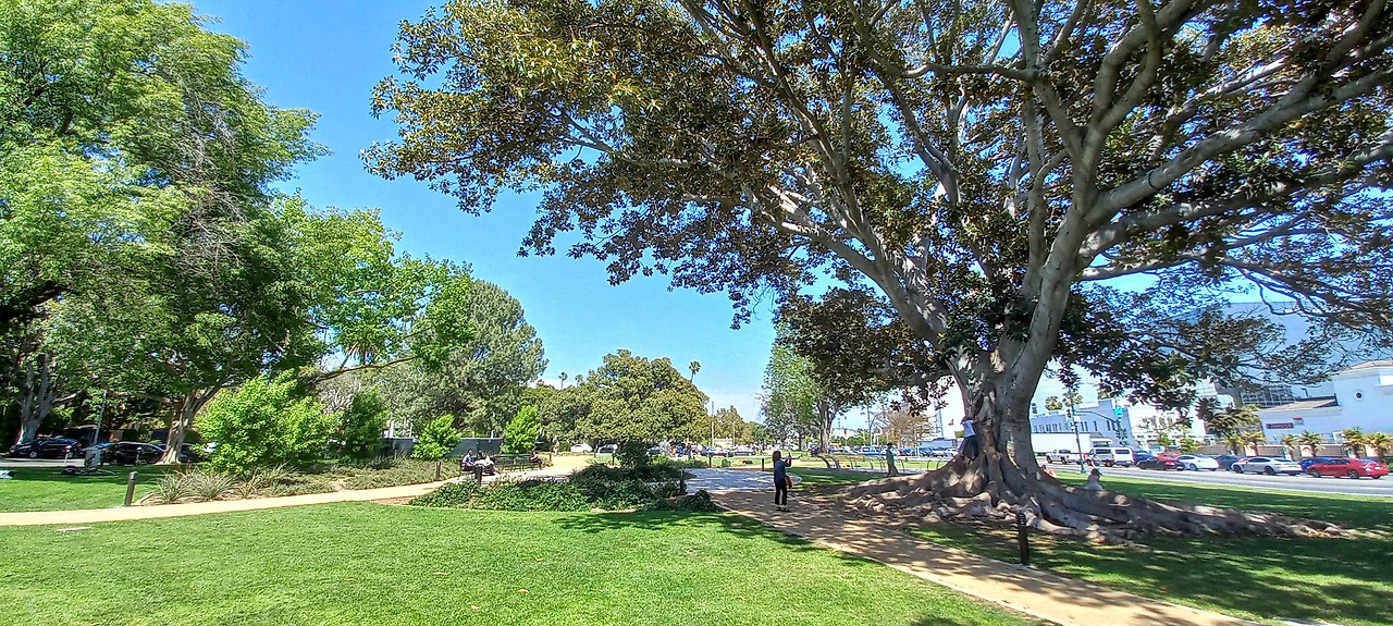 산타모니카 대로에 인접한 주택가 쪽에는 상당히 운치 있는 공원, 비버리 가든이 100년 된 LA 부촌의 입구를 담당하고 있다. 비벌리 힐스라고 쓰인 작은 분수대엔 많은 사람들이 모여있다. 우리 같은 관광객도 있고 결혼사진을 찍으러 온 커플도 있다. 서너 아름도 넘어 보이는 엄청 큰 나무가 여러 그루 있어서 세은이가 굉장히 신기해하고 좋아한다. 가로수로 심어진 키 큰 야자수와 묘한 조화를 이룬다.