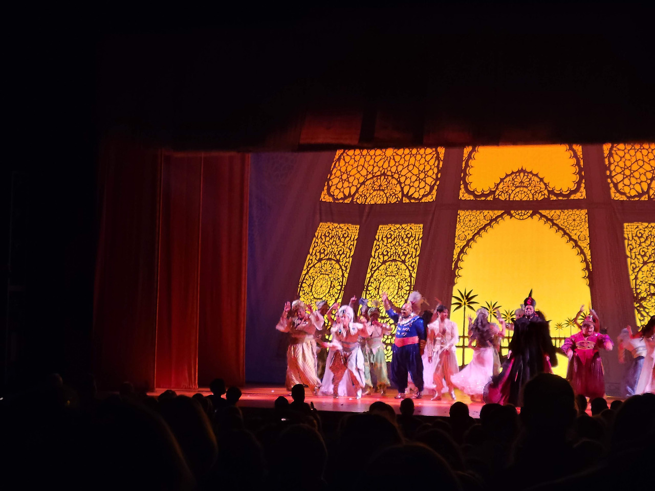 몇 달 뒤, 디즈니 뮤지컬 알라딘(Aladdin)이 일정에 있길래 당연히 세은이를 데려가서 봤다. 알라딘도 우리의 브로드웨이 공연 희망 목록에 있던 건데 제 발로 와 주다니 그저 감사할 따름이다. (알라딘은 투어 중에도 브로드웨이 공연을 중단하지 않는다. 투어팀이 별도로 있음) 알라딘은 세은이가 잘 알고 있는 이야기이기도 하고 한국에서 영화로도 봐서 캣츠보다는 집중해서 잘 보는 것 같다. 이번엔 1층 오케스트라 석에 앉았는데, 확실히 캣츠 때보다는 아이들이 많이 보인다.