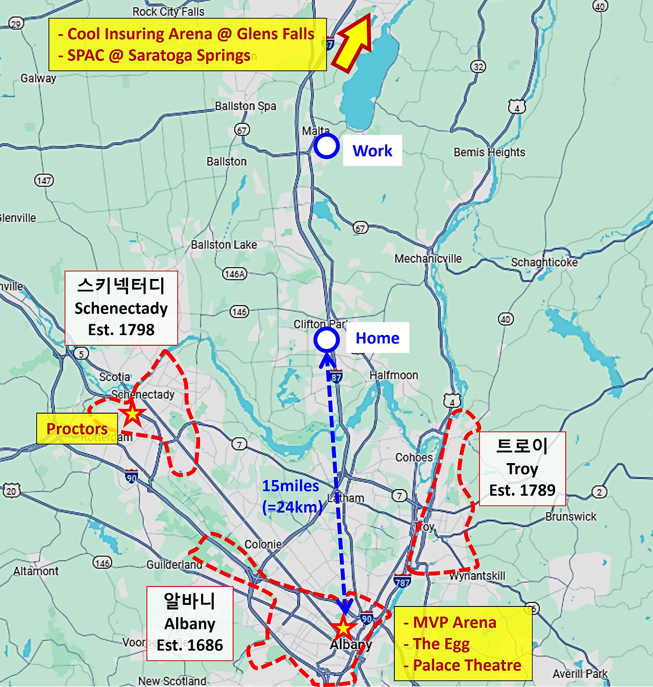 우리가 살고 있는 곳은 뉴욕주 중소도시인 알바니 근처. 이곳으로 말할 것 같으면 뉴욕의 주도(Capital of NYS)로 세워진지 400년이 넘는, 미국 독립 이전부터 있던 도시이다. 이 정도 역사가 있는 곳이라면 사람들이 자주 가는 극장이나 경기장 같은 게 없을 리 없을 것 같다. 그저 내가 모를 뿐이지.