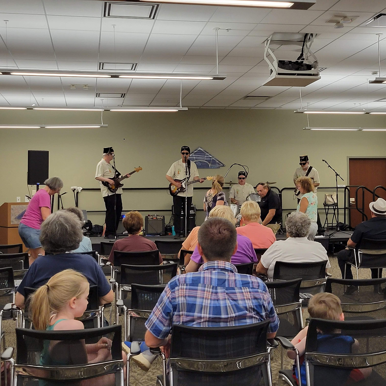 (왼쪽) 도서관에서 열린 작은 콘서트. (오른쪽) 도서관 복도에 전시된 수박 조각 출품작. 미국의 도서관은 다양한 문화/교육 행사가 있는 곳이다.