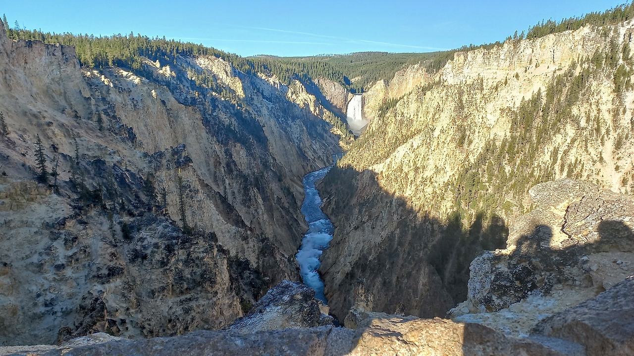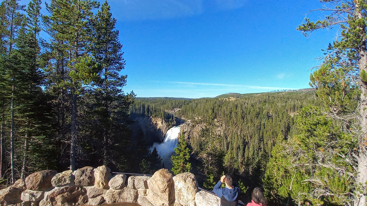 (커버 이미지 : 폭포 높이가 90m를 넘는 Lower Falls. 그 아래 협곡으로는 Yellowstone River가 흐르는 게 보인다.)