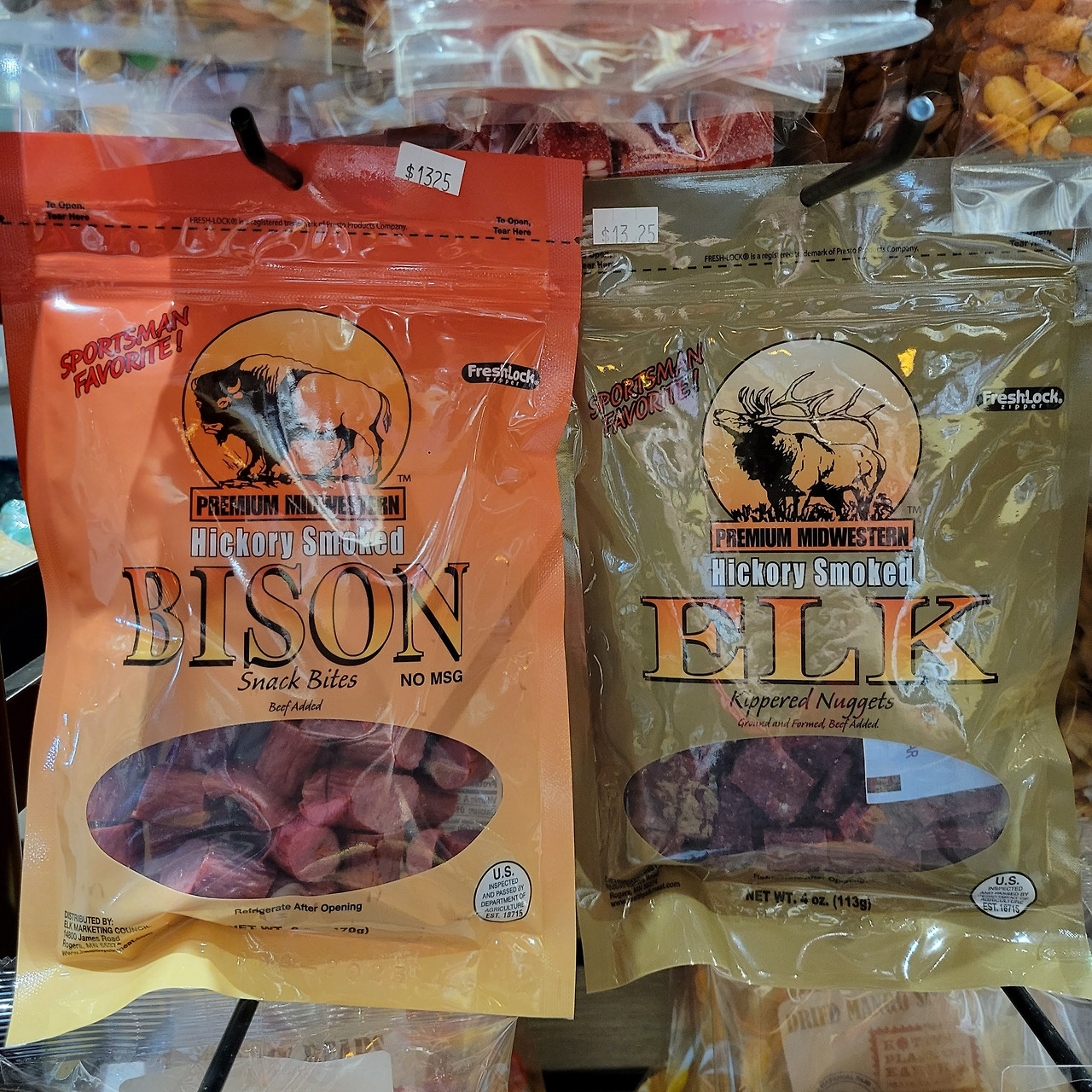 - 기념품점에서는 들소인 바이슨, 사슴인 엘크 육포를 팔고 있다. 소고기 육포보다 배는 비싼데, 실상은 소고기가 절반 정도 섞인 육포다. 기념 삼아 한번 먹어볼 수는 있겠지만 일반 소고기 육포와 큰 차이는 없다. 야생동물은 지방이 적고 누린내가 많이 나서 소고기를 1:1 수준으로 섞어야 먹을만하다고 한다. 식당에서도 바이슨 소시지 메뉴를 파는데 이것도 일반 소고기 함량이 절반정도는 될 것이다. 맛보다는 기분상 먹는 음식이다.