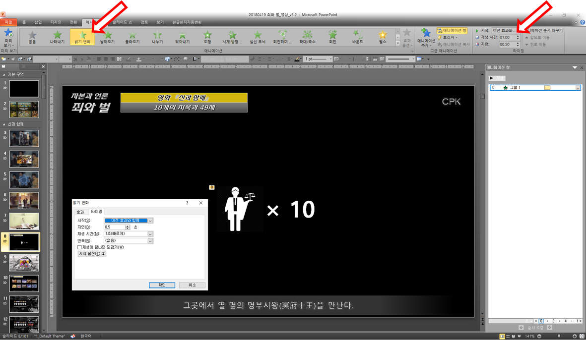 화면이 나온 후 바로 그림이 뜨면 한동안 정지된 화면이 나오므로, [지연시간]과 [재생시간]을 조정하여 심심함을 없애는 것도 유용했다.
