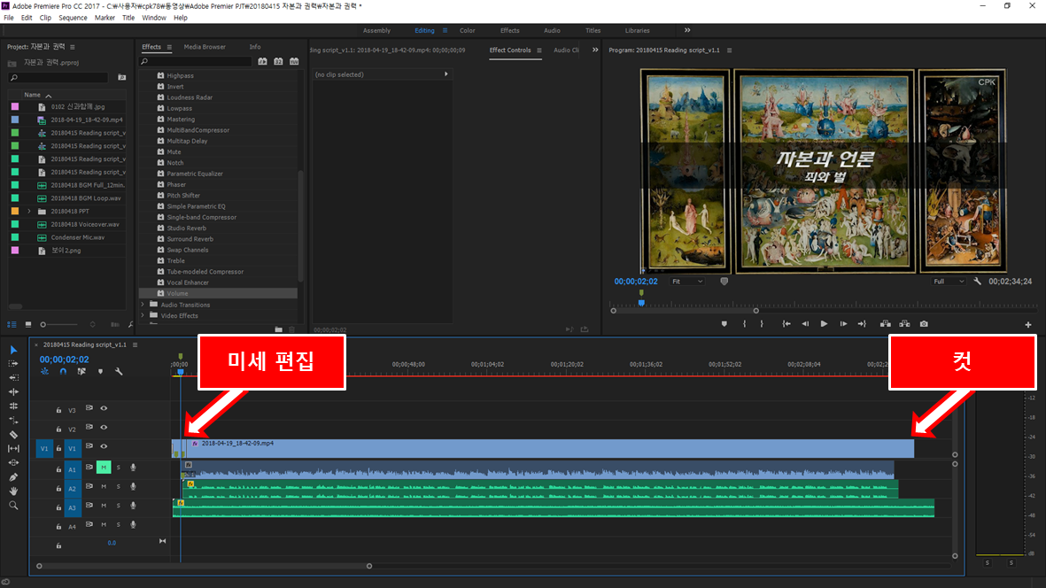 Adobe Premiere 2017 - 도입/엔딩 편집 + 볼륨 조정