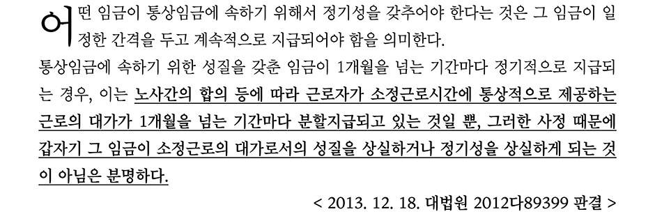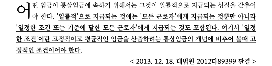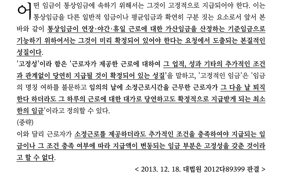 그런데 뒤에서 다시 언급하겠지만, 통상임금에서 고정성이라는 개념은 자연스럽게 나타나는 개념이다.