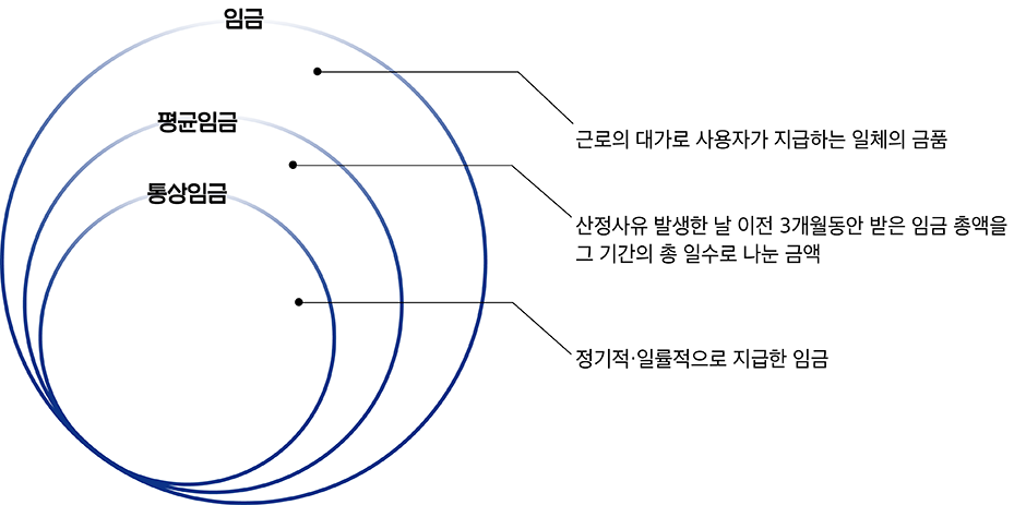 정의상 임금의 개념이 가장 크고, 평균임금이 그다음 그리고 통상임금순으로 볼 수 있다.