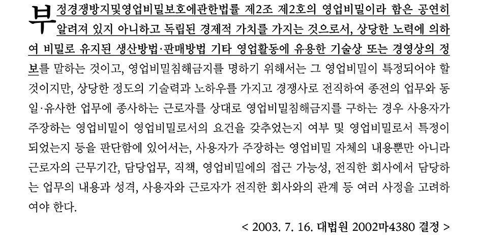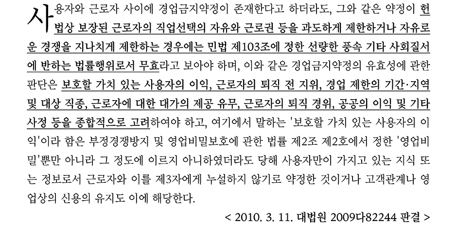 즉, 경업금지의무 위반의 사례에서는 경업금지를 위반했는지 자체도 중요하지만, 근로자가 경업금지를 위반하게 된 경위도 함께 판단되어야 한다.