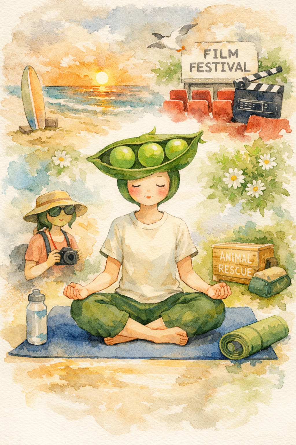 완두: 최근 일이 년 사이에, 동물에 대한 관심이 커졌어요. 그래서 동물의 복지랑 권리, 그리고 동물 자체에 대한 관심도 커져서 자연다큐도 많이 보게 되었어요. 그리고 재작년에 강아지를 구출한 일이 있었는데 그때를 계기로 여러 가지 동물들에 대한 관심이 늘어나서 동물 보호 단체에서 자원봉사 활동을 하고 있어요.