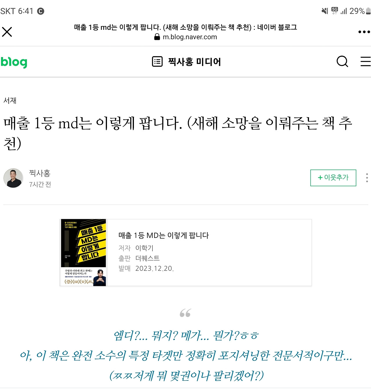 책 쓰는 딜러 & 차 파는 작가