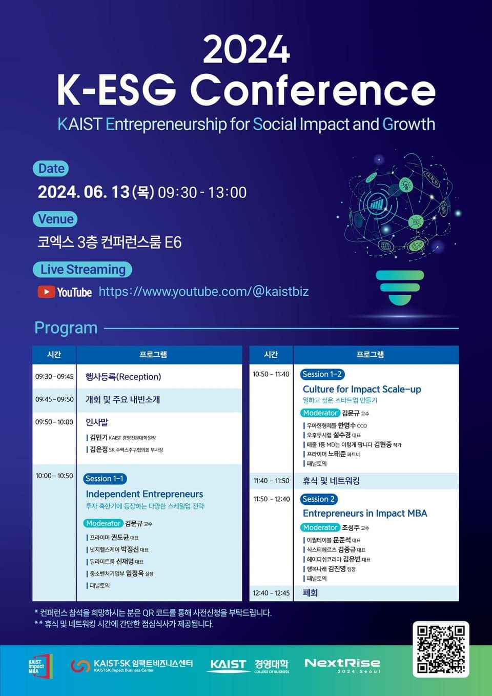 오늘 코엑스 3층 컨퍼런스룸에서 열린 <2024 KAIST Entrepreneurship for Social impact and Growth> Conference에 패널로 다녀왔어요 :)