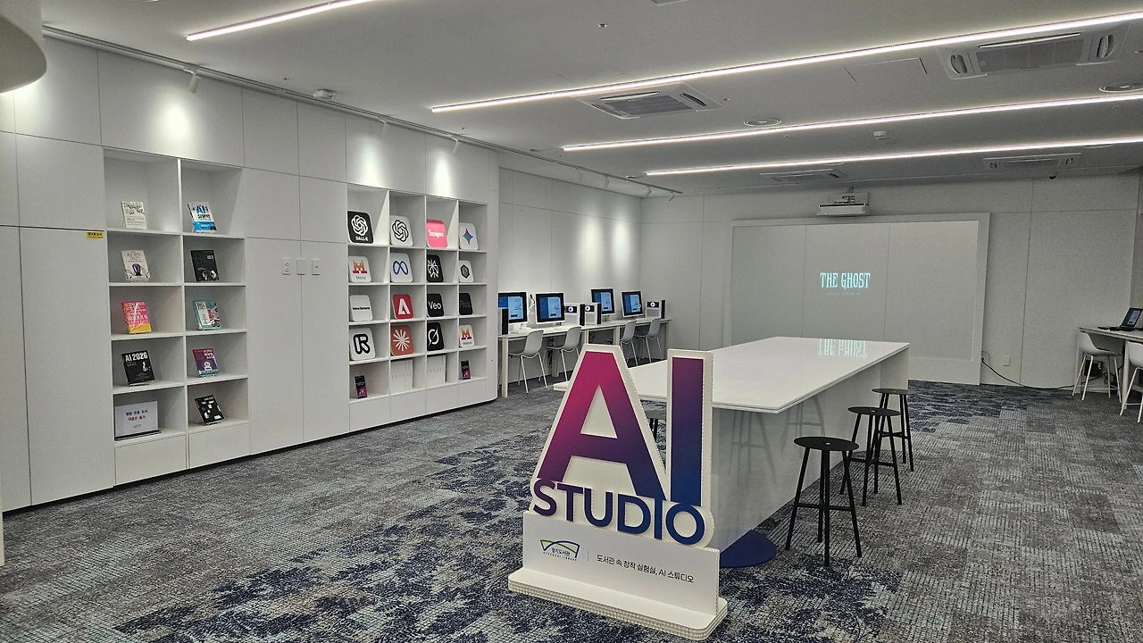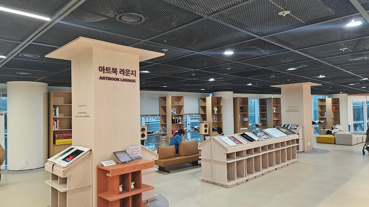 독토를 마치고 위에서부터 한 층씩 내려오며 도서관을 둘러보았습니다. 가장 인상적인 공간은 '아트북 라운지'였는데요. 갤러리 같은 공간에서 음악을 들으며 예술 서적을 읽는 경험은 정말 황홀하더라고요. 지하에 있는 'AI 스튜디오'에서는 챗GPT-5부터 그록3, 런웨이 등 최신 유료 AI를 직접 체험할 수 있어 신선했어요. 전체적으로 뻥 뚫린 자유로움과 아늑한 공간이 주는 쉼이 기존 도서관의 분위기와는 완전히 달랐어요.