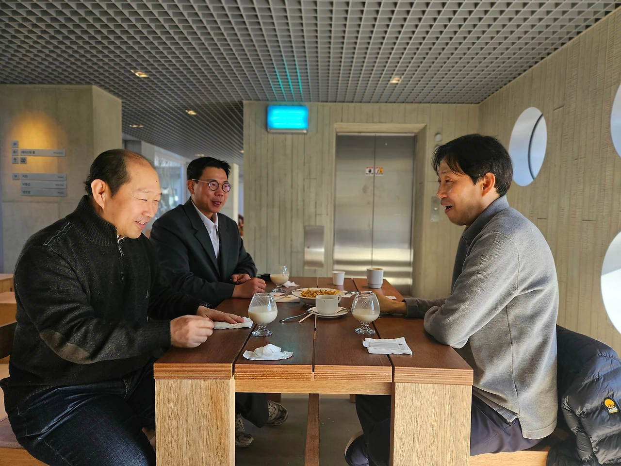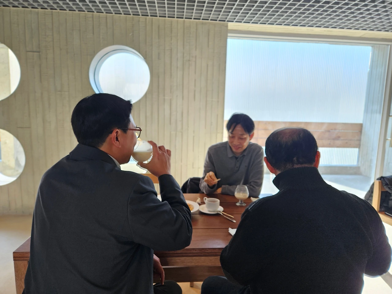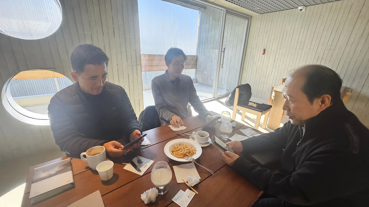 무진의 정보력과 섬세함을 칭찬하지 않을 수 없었다. 차를 가져온 맹반장을 제외하고 나머지 셋은 와인잔에 담긴 오늘의 막걸리를 주문했다. 계산은 깔끔하게 '뿜빠이'가 원칙이었지만, 1월에 예기치 않게 대통이 터졌던 오뉴가 감사한 마음을 담아 카드를 내밀었다.