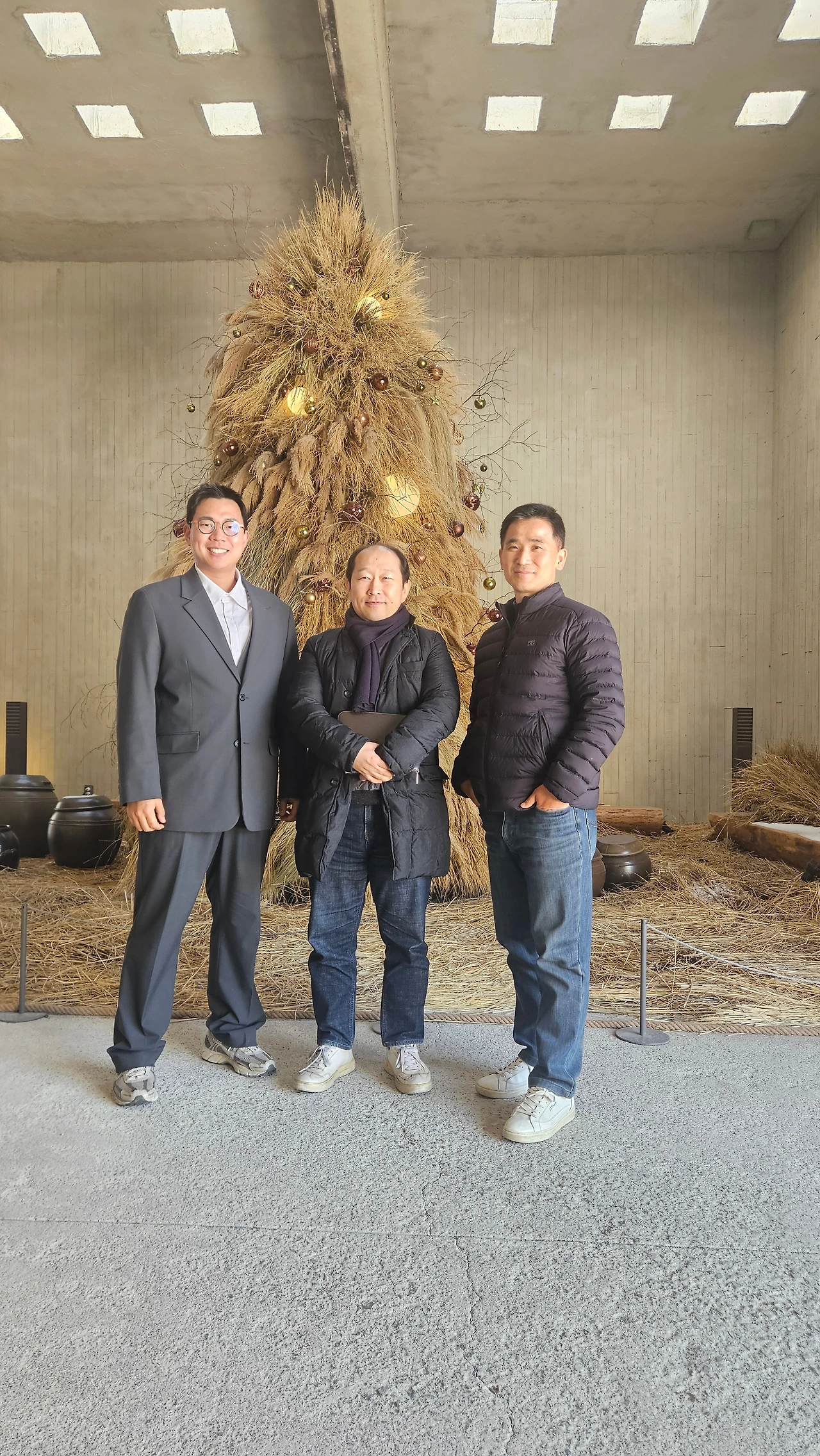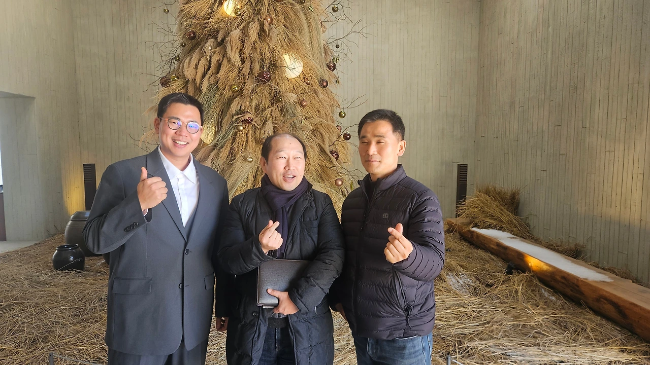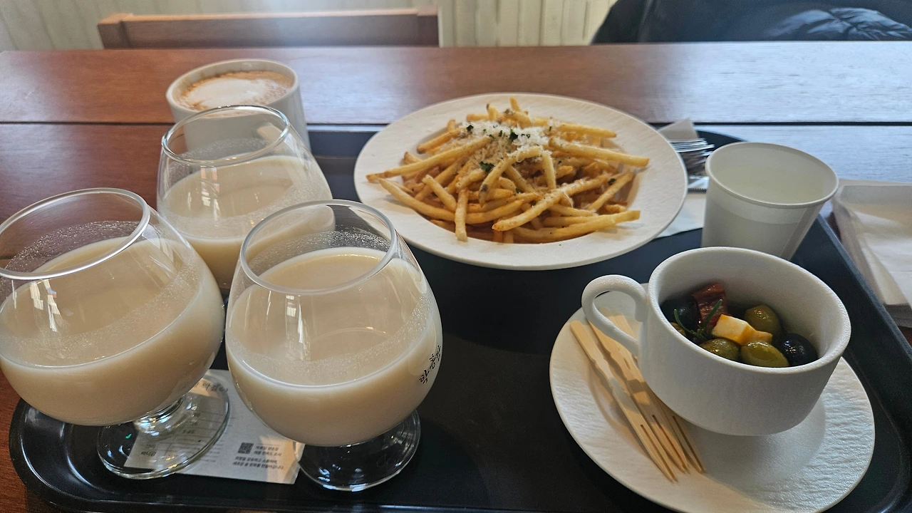 낡은 건물과 세련된 인테리어가 흡사 성수동의 핫플 같았다. 외관은 다소 낡았지만, 소년의 마음을 품은 아재들은 성수동 런웨이에 선 것처럼 걸었다. 볏짚 트리 앞에서 포즈를 취한 우리는 낯선 친밀감에 한번, 풍겨오는 막걸리에 달큼함에 또 한 번 취했다.