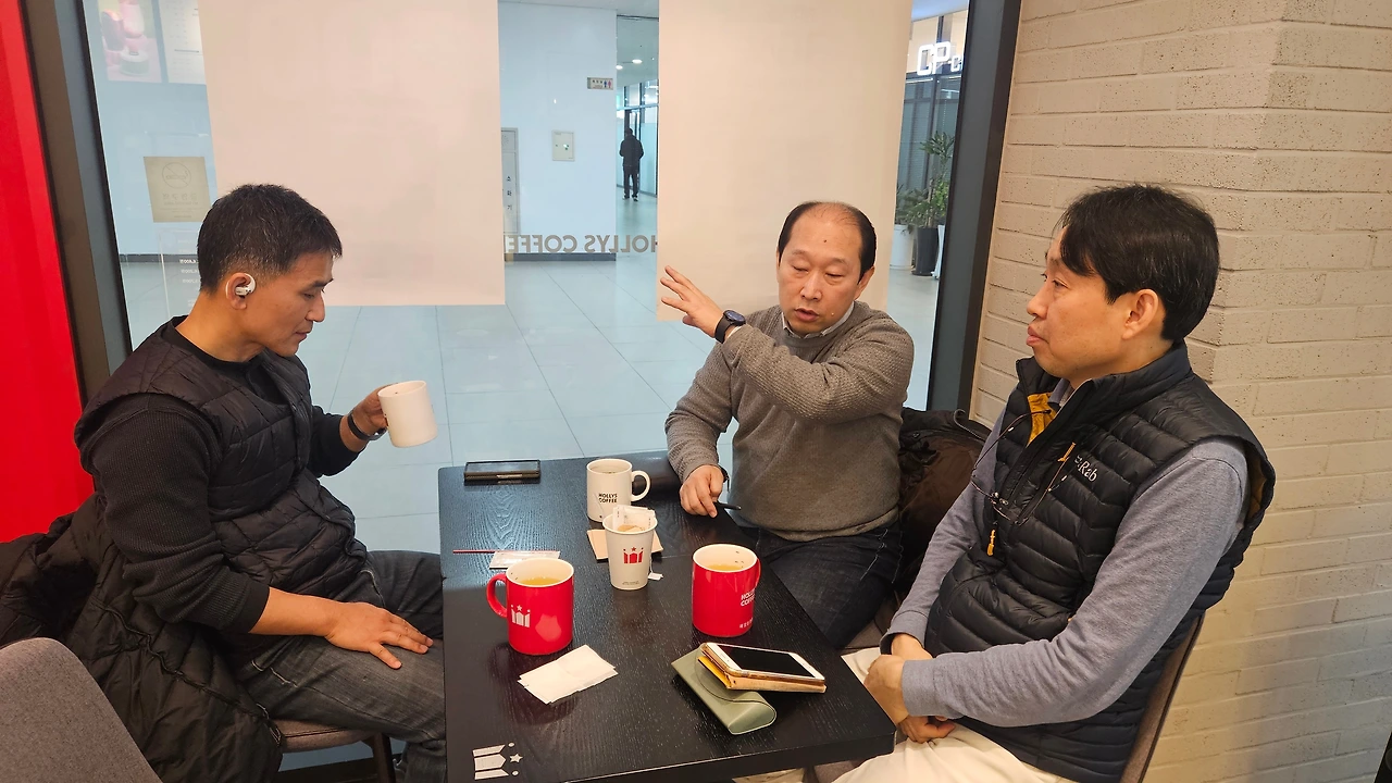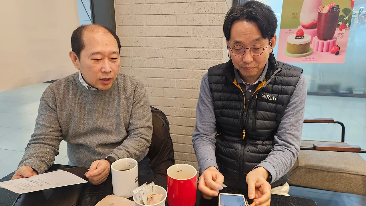 이번 ‘독토글’(독서토론+글쓰기)은 중고차 단지 내 1층 할리스커피에서 진행했다. 커피 향 속에서도 문장의 여운이 오래 남는 자리였다. 맹반장은 바쁜 일정 탓에 시작할 때 잠시 얼굴만 비추고 떠났다. 남은 오뉴와 조나단, 무진 세 사람이 쏟아낸 이야기는 그 빈자리가 느껴지지 않을 만큼 촘촘하고 강렬했다.