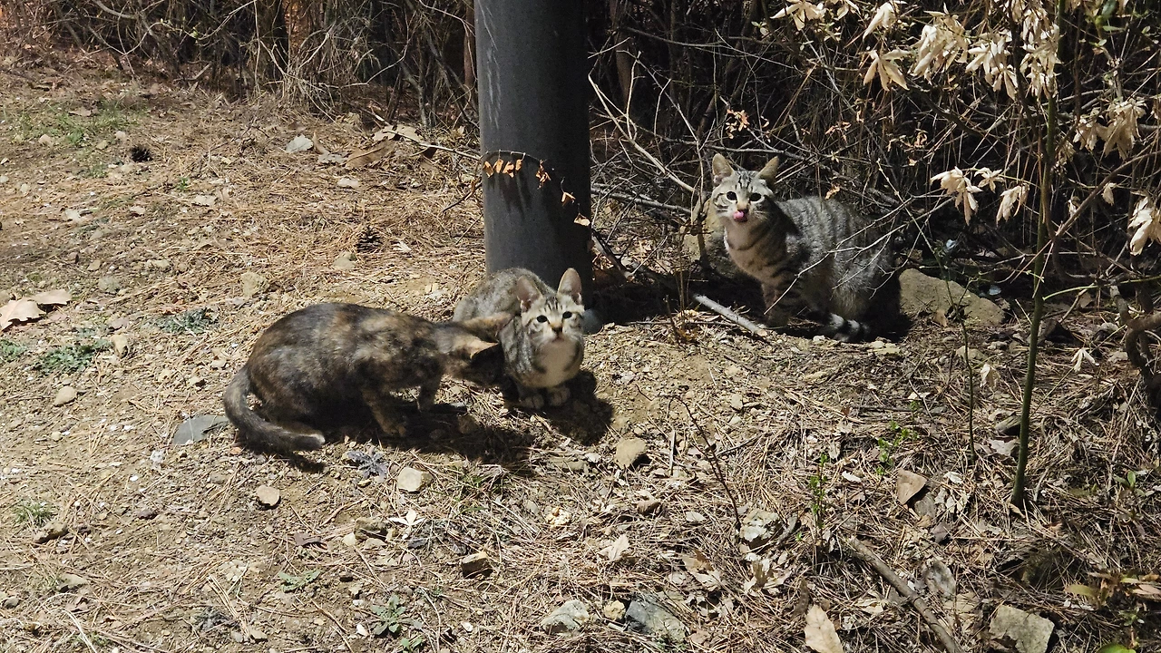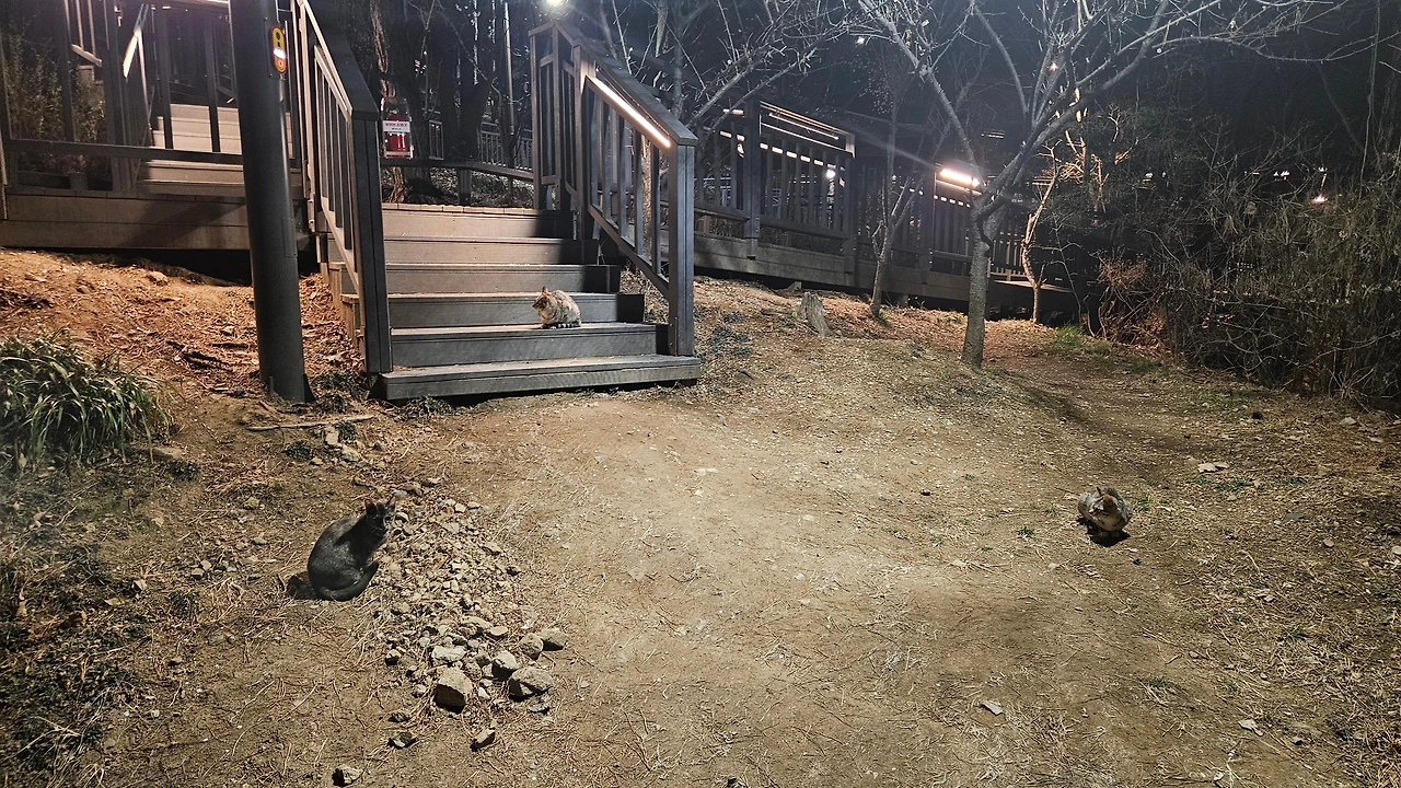마침 철봉이 보여 턱걸이를 하고 있는데 아기 고양이 세 마리가 모여들었다. 사람을 겁내지 않는 걸 보니 등산객들에게 사랑을 듬뿍 받았나보다.