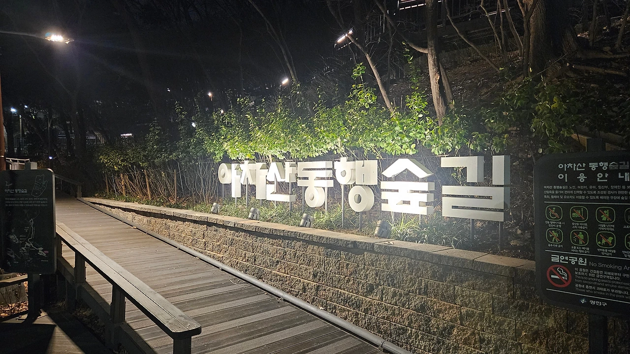 수원에서 업무를 마치고 장신대에 오니 저녁 7시 30분. 수업 시작까지 1시간이 남았다. 장신대 후문 쪽 '아차산동행숲길'을 처음 걸었다.