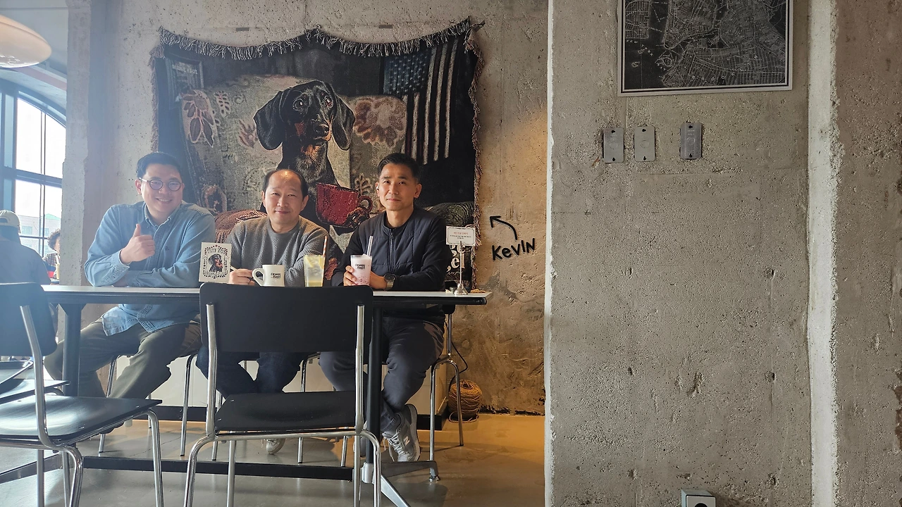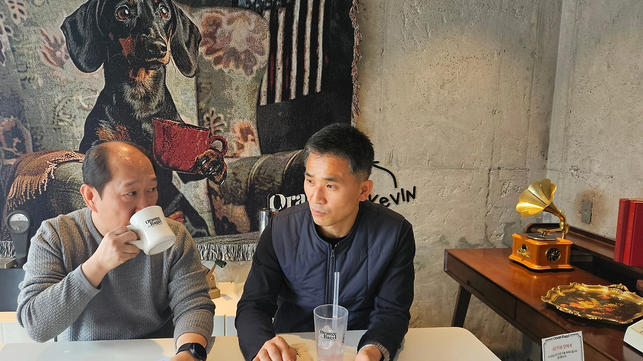 화요일 점심, 우리 모임의 성지 '오렌지베이글'에 맹반장과 조나단, 오뉴가 모였다. 뼈해장국으로 속을 채운 중고차 딜러 셋이 베이글 카페에 앉아 원고를 펼치는 풍경. 샤갈의 마을에 내리는 3월의 눈처럼 생경하지만, 그 생경함이 반갑다.