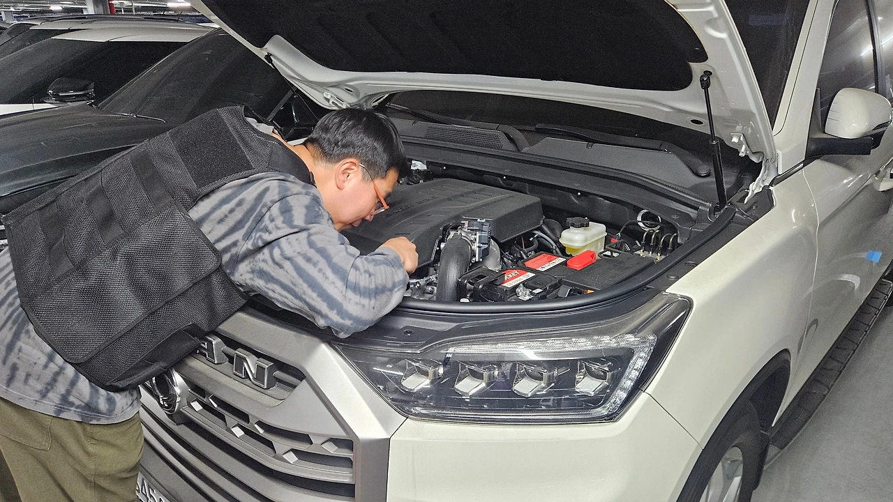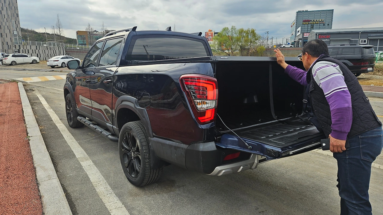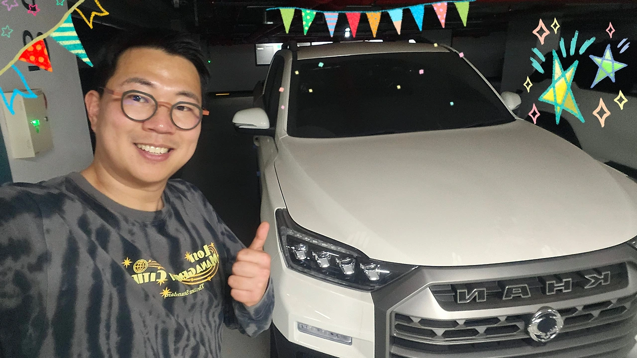 계기판에 찍힌 숫자, 고작 80km. 비닐도 그대로, 새 차 냄새도 그대로인데 가격은 새 차가 아니다. 2025 쌍용 무쏘 칸 2.2 AWD 프레스티지. 이 차의 새 주인이 되신 분은, 이랜드에서 오랜 세월을 보내고 중국에서 굵직한 커리어를 쌓아온 고종화 선배님이다.