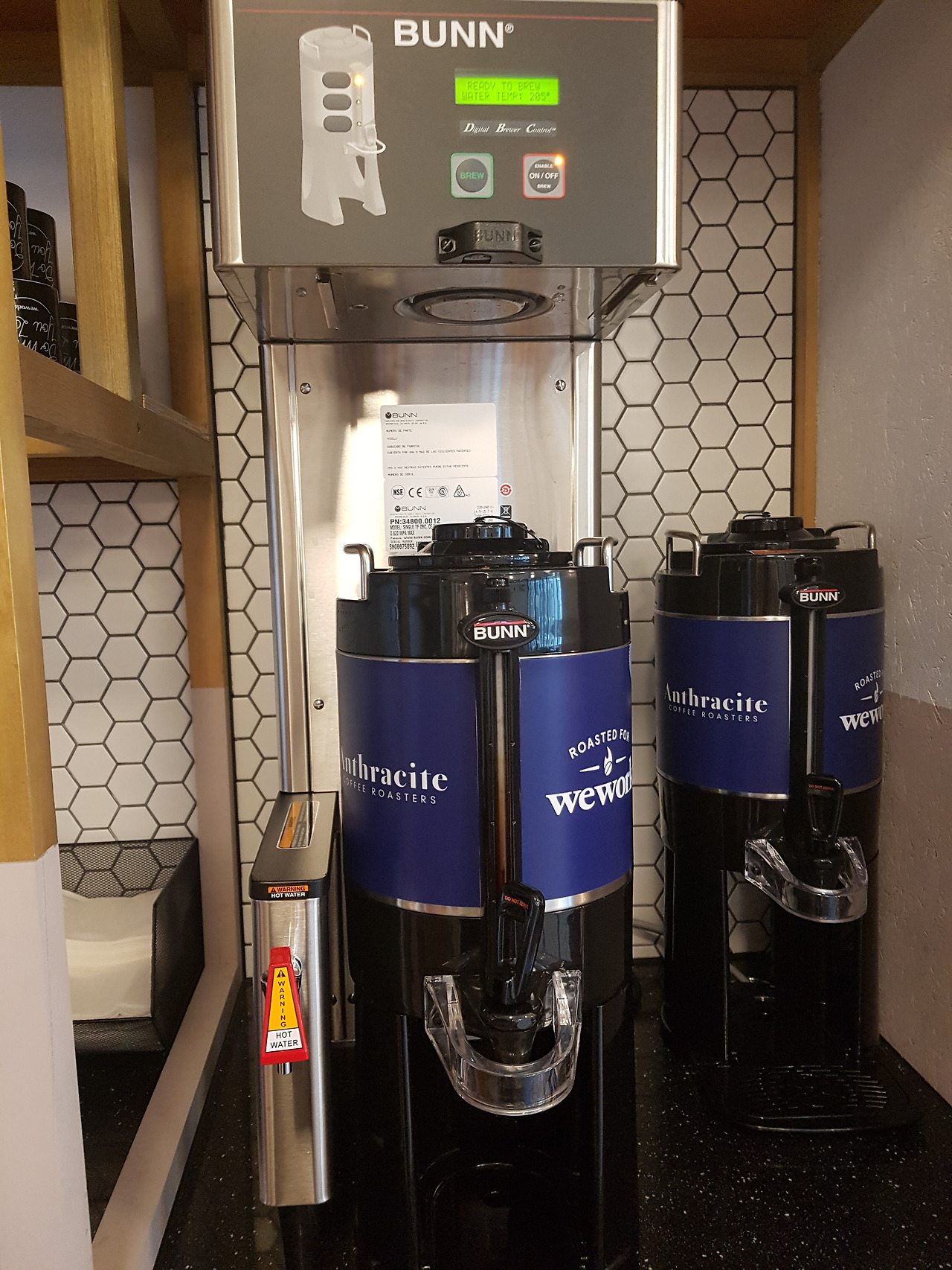위워크에서는 입주사들을 위해 레몬워터, 프리미엄 로스팅 커피와 크래프트 비어, 우유, 베지밀을 무료로 제공한다.