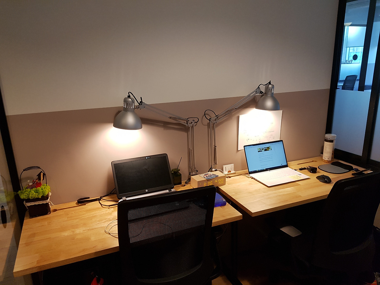 위워크에 입주하는 분들 중 상당수가 디자이너인데, 듀얼 모니터를 사용하고 있는 분들을 보면 책상이 좁아 애처로워(?)보이기도 한다.