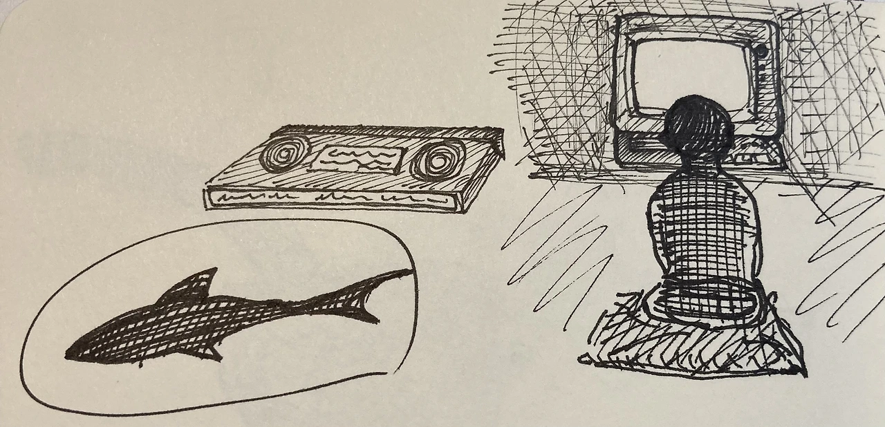 심지어, 어릴 때 미술대회를 나가잖아요? 거기서도 상어를 그렸어요. 거기 나가서 상어와 싸우는 잠수부를 그린 적이 있는데, 잠수부가 던진 작살이 몸에 꽂혀 피를 흘리면서 턱을 벌린 상어가 묘사된 그 고어한 그림으로 입상을 한 것은 아직도 의문입니다.