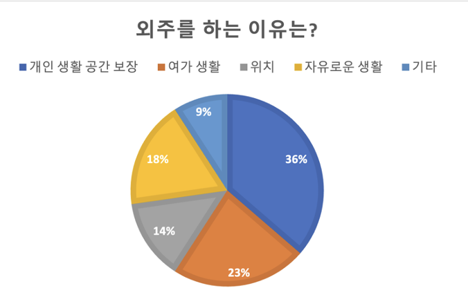 외주를 선택한 이유로는 개인 생활공간 보장, 여가 생활, 자유 등의 사유가 상위권을 차지했고, 기타 의견으로는 기숙사 허가가 나지 않아서 혹은 잦은 봉쇄 탓에 학교 밖에 살게 되었다는 사례가 있었다.