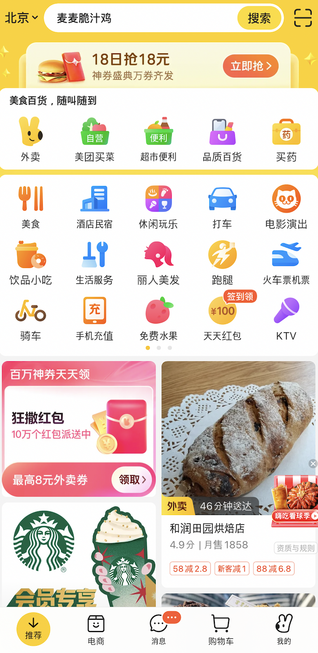 메이투안에서는 생활 속 일어나는 모든 일을 한 번에 해결할 수 있다. 집수리 예약을 부르고, 영화표를 예매하고 웹소설까지 대여해서 볼 수 있다. 또한, IT와 의료 산업이 결합해서 성장한 사례가 많은 중국이기 때문에 온라인으로 진료를 받을 수도 있고, 약품을 구매하기도 한다.