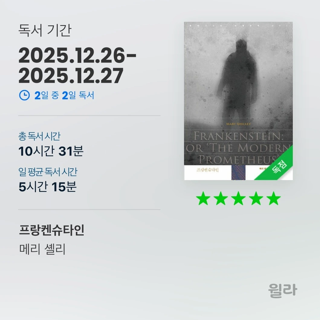 하지만 책 속의 프랑켄슈타인은 전혀 다른 이야기였다.그리고 더 놀라운 건, 프랑켄슈타인은 괴물의 이름이 아니었다는 사실이다. 괴물이라 불리던 존재를 만든 사람, 바로 빅토르 프랑켄슈타인이 그의 이름이었다.