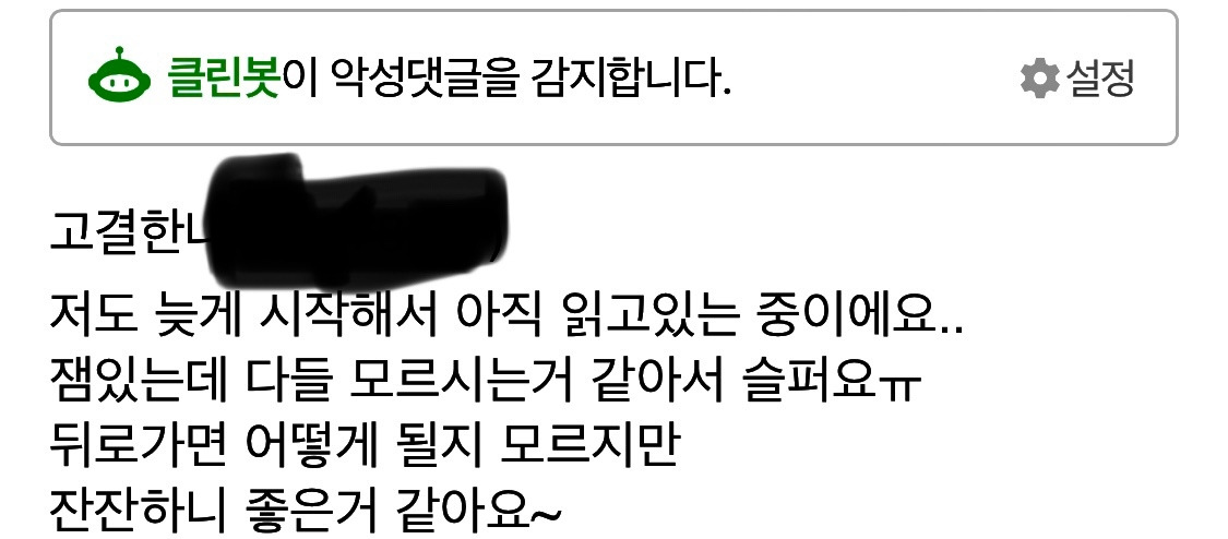 마음의 소리가 제멋대로 떠들고 있을 때, 댓글을 발견했다. 내 소중한 단 하나의 댓글이었다. 멍했다.
