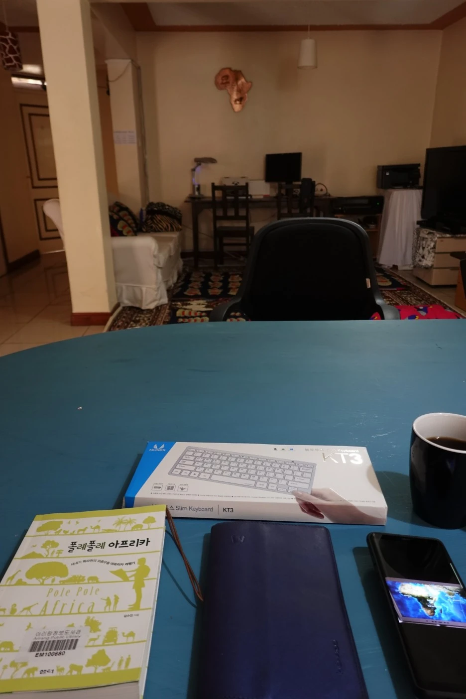 전체적인 여행 계획은 대강 짜 놨지만, 확정된 건 지금까지였다. 원래 계획인 나이로비 공항에서 바로 탄자니아 국경을 넘어 아루샤(Arusha)로 가는 걸 놓쳤지만 어제, '그보다 좋은 인연'들을 만나고 이렇게 안전한 곳에서 느긋하게 쉬면서 일정도, 톡으로 날아오는 업무들도 잘 해결하면서 이튿날을 보내고 있었다.