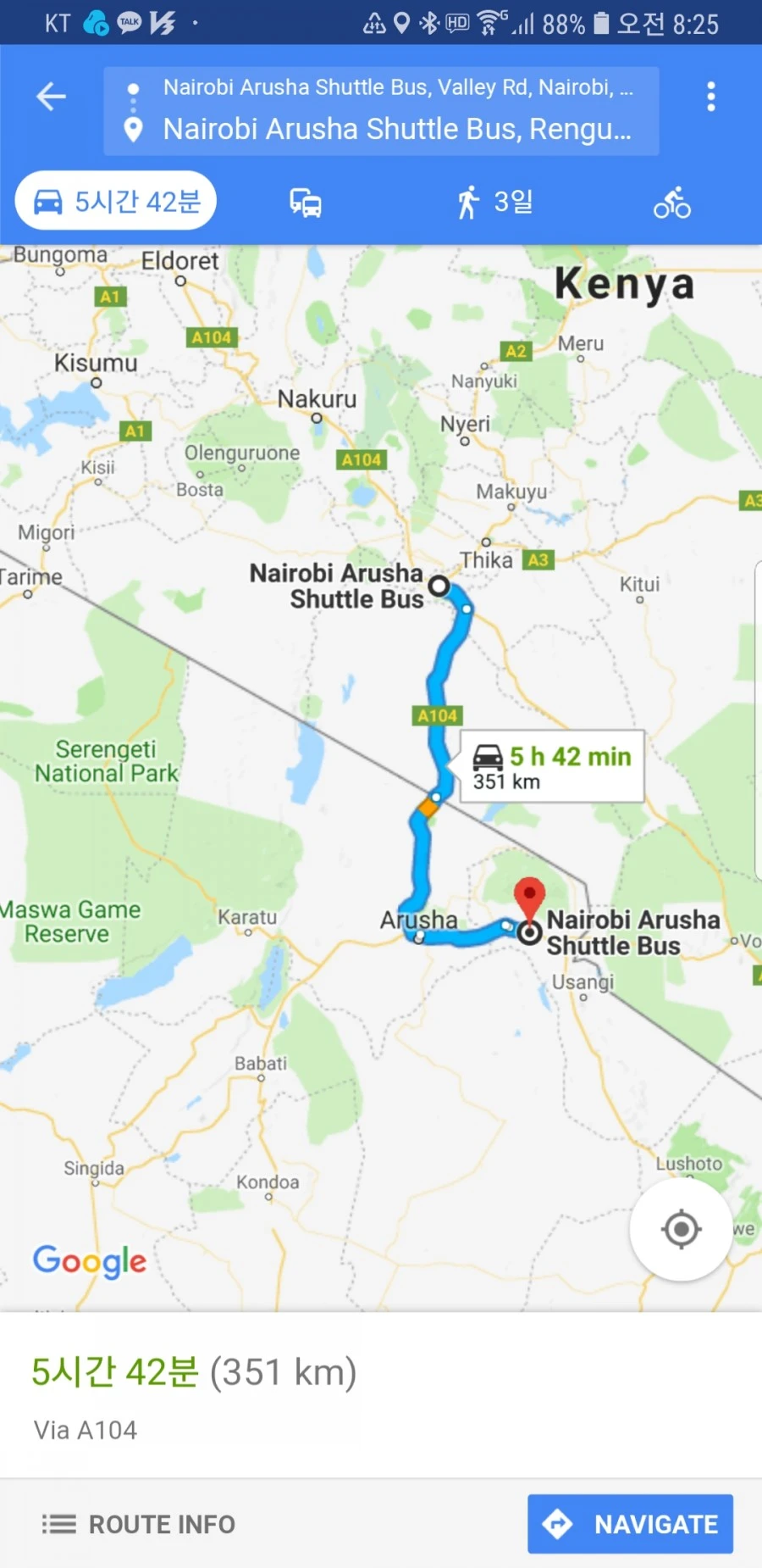 차분히 생각을 가다듬으면서, 지금 이곳의 사정을 보고 여정을 재점검하며 고민을 했다. 여기 나이로비의 사파리(마사이 마라 투어 2박 3일)를 하느냐, 아니면 6시간 이상 걸려 아루샤로 넘어가 세렝게티 투어(2박 3일 이상) + 모시에서 킬리만자로 트래킹 투어(1박 이상)를 하느냐...