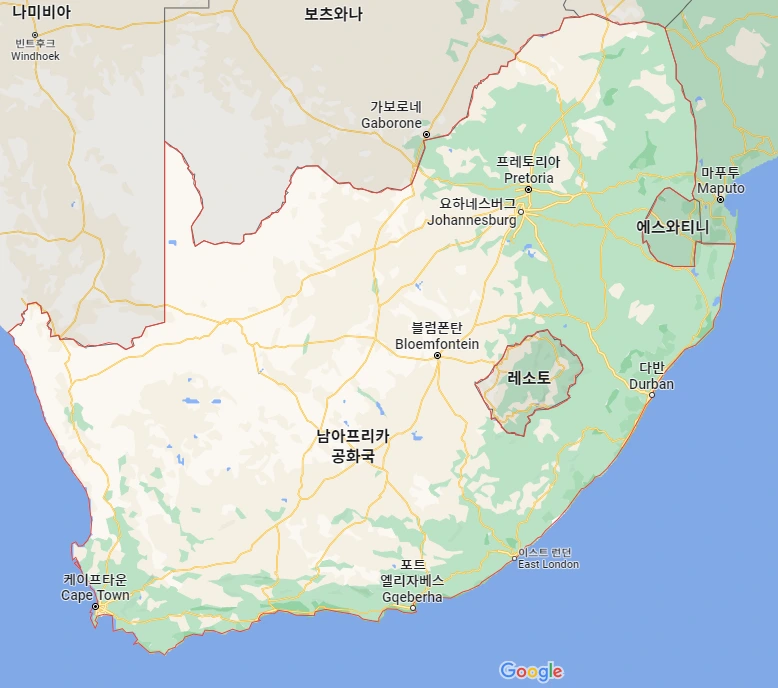 요약: 아프리카 대륙 남단부를 차지하는 나라이다. 17세기 네덜란드인의 이주 이후 백인이 유입되며 1815년 영국의 식민지가 되었고 아파르트헤이트 인종차별 정책을 비판하는 영국 정부로부터 독립해 1961년 5월 남아프리카공화국을 선언했다.