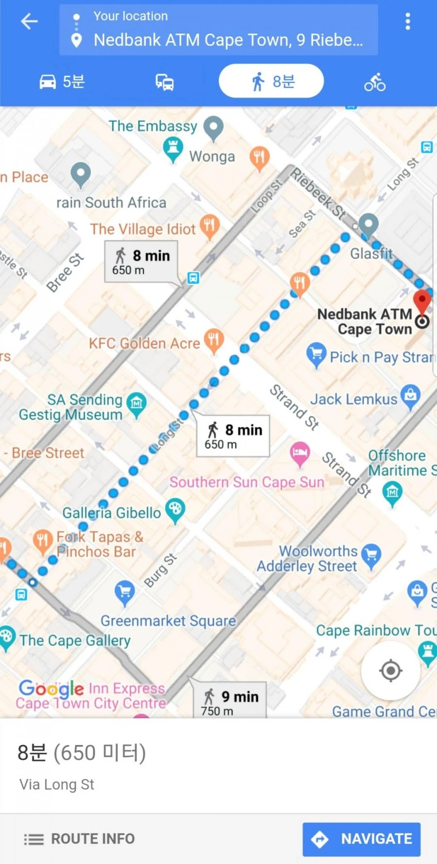 구글맵에 장소를 저장하고, 이제 ATM에서 인출 후 마트에 가야 했다.