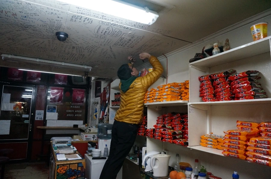 칠레 푸에르토나탈레스를 여행할 때 간 한국인 라면 가게. 여기서 라면을 얼큰하게 먹고, <토레스델파이네> 트레킹 대비에 앞서 산 컵라면 또한 감기 대비에 요긴