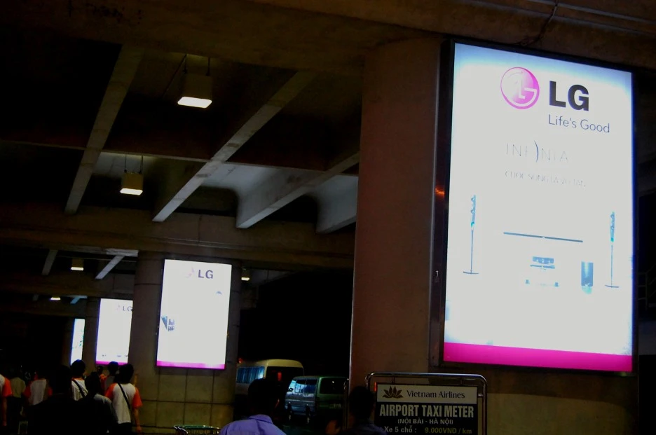 하노이 공항에 도착 후 반갑게 맞이한 에어컨 제품 광고를 하던 LG전자의 간판! 베트남 하노이로 비행시간은 4시간 30분 정도 걸리며, 시차는 한국보다 2시간이 늦었다. 몇 년 전인 당시, 베트남에 입국하면서 느꼈던 것은 인터넷에 돌던 동남아의 한류 바람을 체감했다는 것. 공항에서 동남아로 보이는 사람들이 "Korean?" 하고 얘기하는 것도 들리곤 했던 거로 기억한다. 그전에 유럽여행을 갔을 때, 내가 일본인 혹은 중국인이냐고 질문을 당하는 그 시기에 이렇게 동남아에서는 LG전자 및 삼성전자, 또 인터넷에서 도는 한류 바람을 타고 한국과 한국인에 대해 관심을 가지는 베트남인들도 생겼다는 기억을 되살릴 수 있다. 하노이 공항에서부터 시내까지 가는데, LG전자의 에어컨 및 TV, 삼성전자의 핸드폰 등 보이는 곳곳의 광고판에서 그 실감을 할 수 있었다. 또한 내일 가게 될 곳 역시 그걸 느낄, 한-베트남 합작 건설사 방문지도 예정돼 있었다.