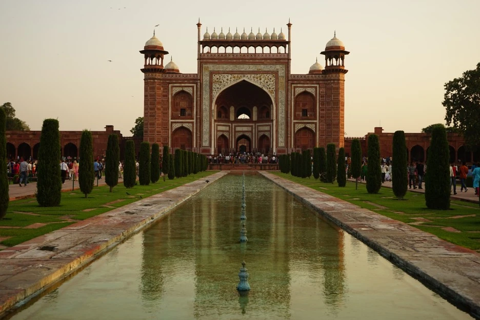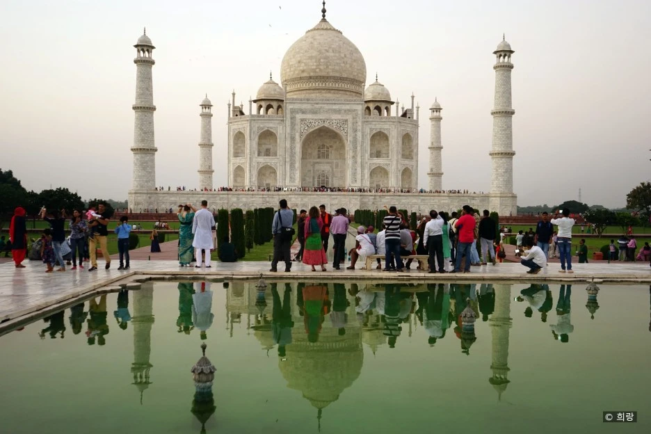 왕의 사랑과 쏟은 정성에 보답이라도 하듯 ‘찬란한 무덤’이라 불리는 타지마할은 아름답기 그지없다. 사랑의 금자탑이라 부르기에 손색이 없는 모습이다. 붉은 사암으로 된 아치형 정문을 통과하면 넓은 뜰에 수로가 있는 무굴 양식의 정원이 펼쳐진다. 길이가 약 300m에 이르는 일직선의 수로 중앙에는 연꽃 모양의 수조가 있고, 분수가 물을 뿜어내고 있다. 수로에 비친 타지마할의 모습 또한 환상적이어서 수많은 사진가들이 이곳에서 시간을 보낸다.